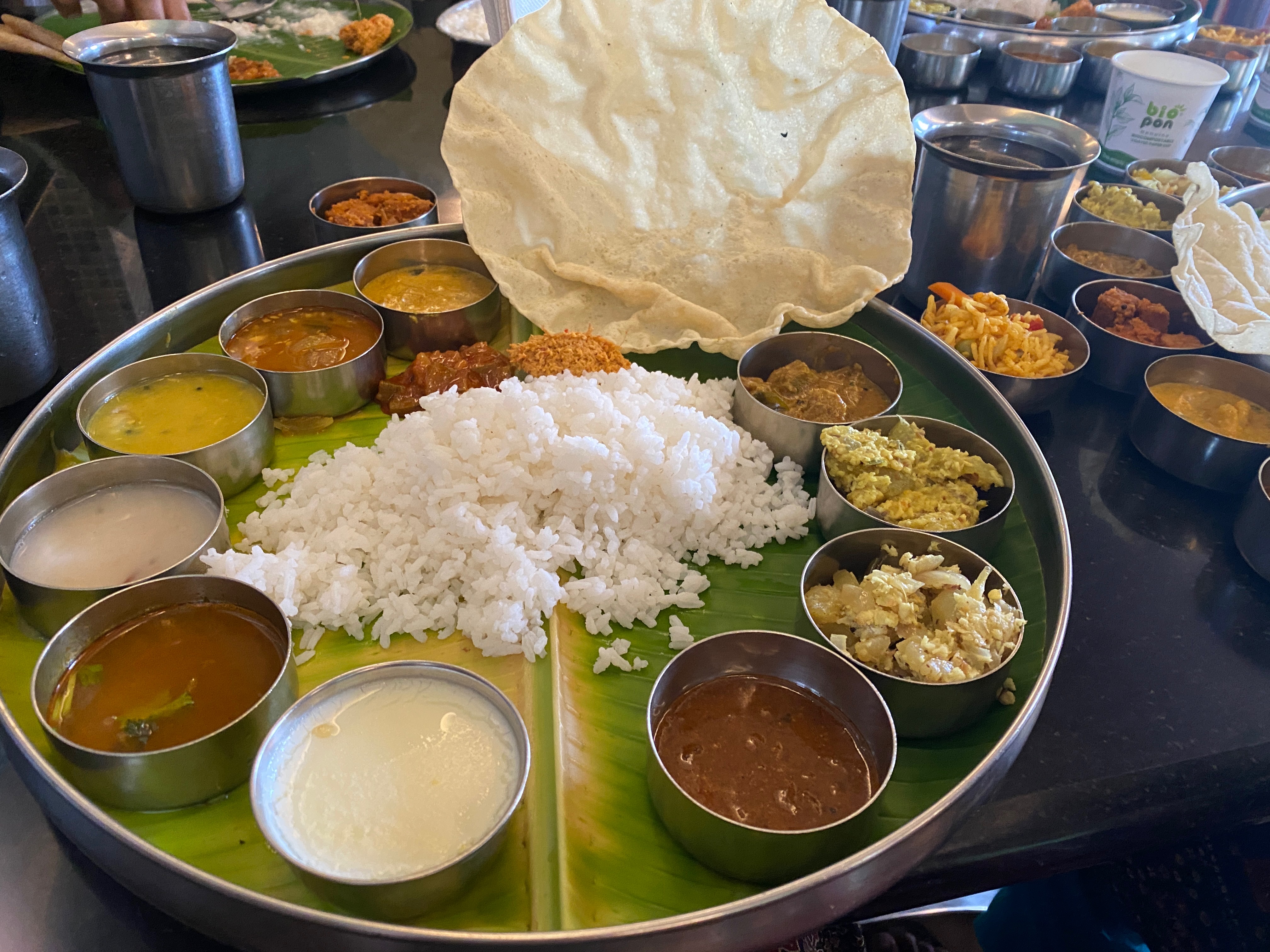 Served on a banana leaf, this thali had 23 different items, each one prepared with so much care and flavor. From comforting curries and crunchy pickles to payasam for sweetness at the end, every bite reminded me of home and tradition.